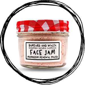 Face Jam microderm renewal polish is a once-a-month treatment to resurface and transform your skin leaving it incredibly soft, smooth, and radiant looking. After a few uses Face Jam reduces fine lines, wrinkles, discoloration, sun damage, acne scars, enlarged pores and age spots. Face Jam contains oodles of goodies for your skin in this cute glass gingham jar! We’ve packed it with natural resurfacing ingredients, dermabrasion crystals, nutrient rich shea butter, honey and much more. Sometimes we all just need a little sand blast to make us look fabulous again! Face Jam is sure to be one of your new beauty staples in your routine. Get ready for your first treatment… it will be the softest, most radiant skin you’ve ever had!How It Works